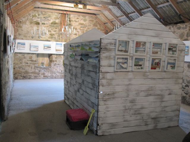 Transforming 2 full and dusty barns into interesting exhibition spaces, industrial style. To show my 3d collage Seascapes; plastic creations from plastics washed up on the beach, my drawings of my vegetables I grew last year, and in barn 2, The Art Class students’ work bombastically hung to wow, it did.